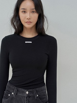 라벨업 골지 슬림 티셔츠(블랙)
